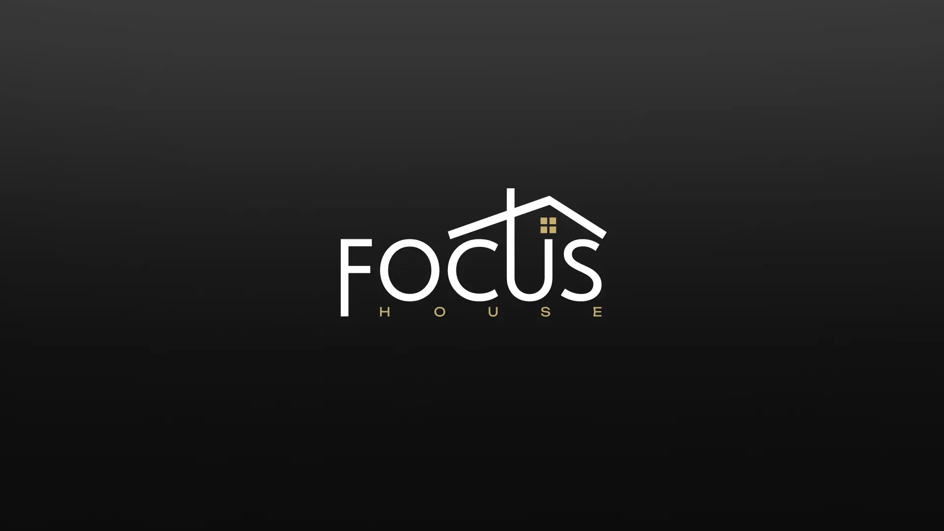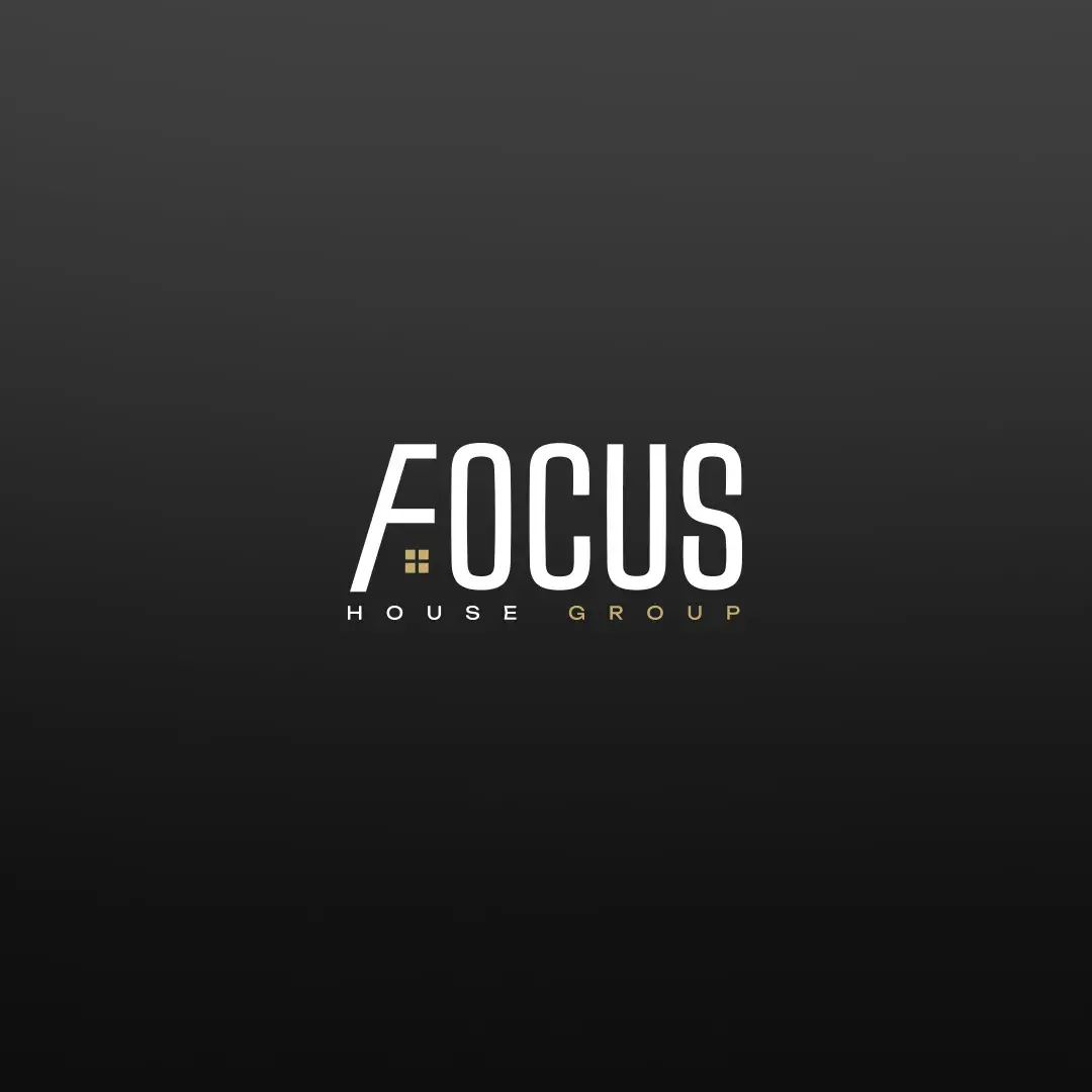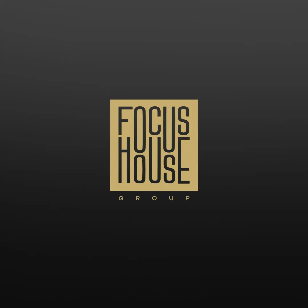 • “FOCUS” in modern sans-serif with refined lines, “HOUSE” in gold for warmth
