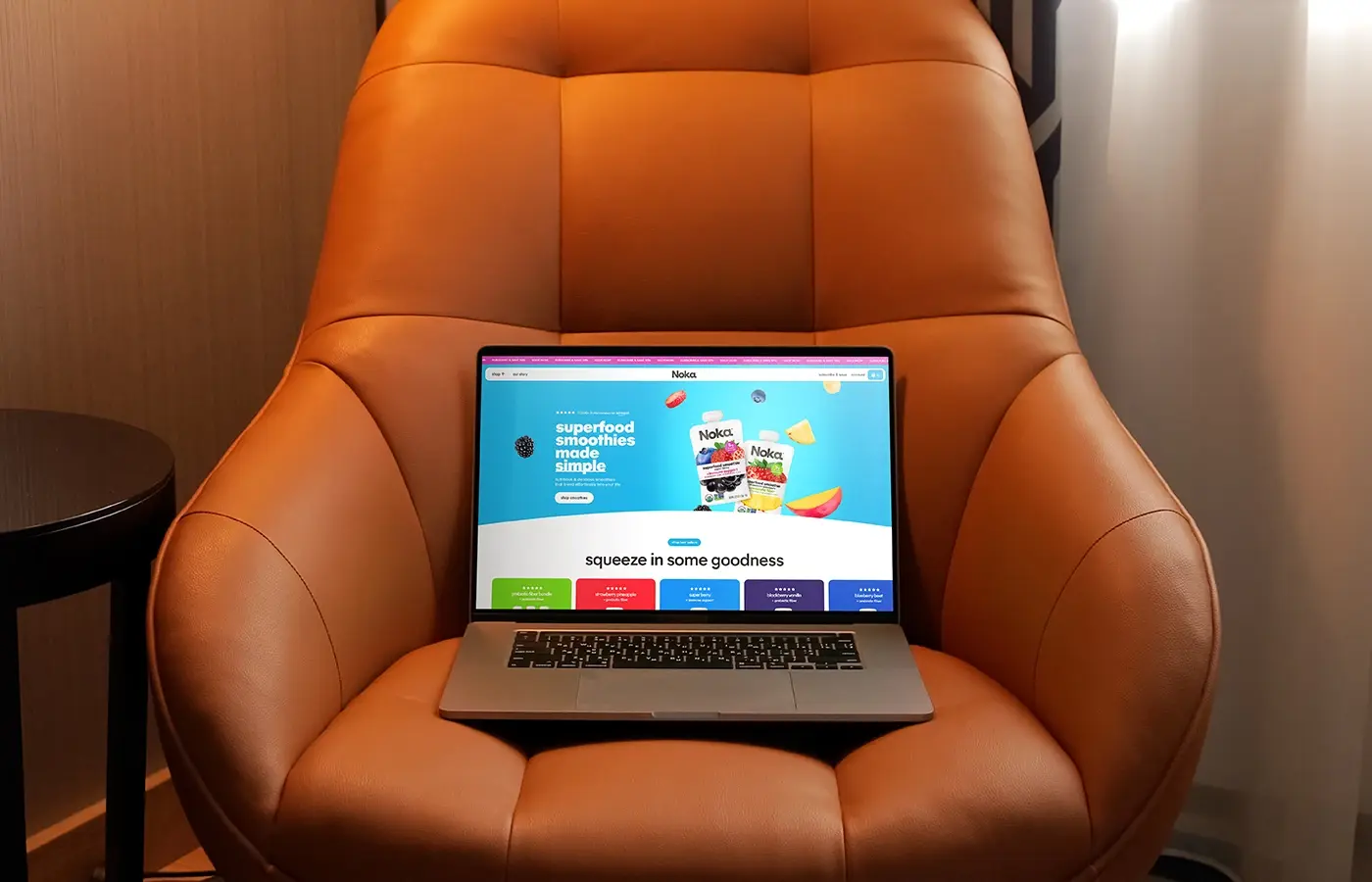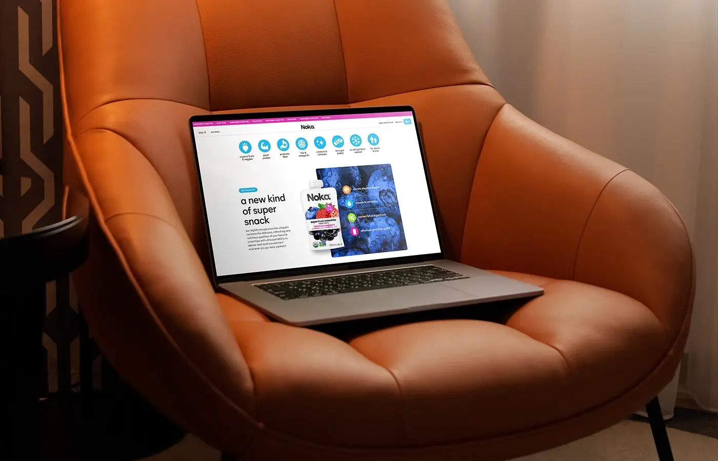 Website design and development for Noka Organics — a user-friendly platform for superfood smoothies in portable pouches, highlighting naturalness, convenience, and on-the-go flavor.