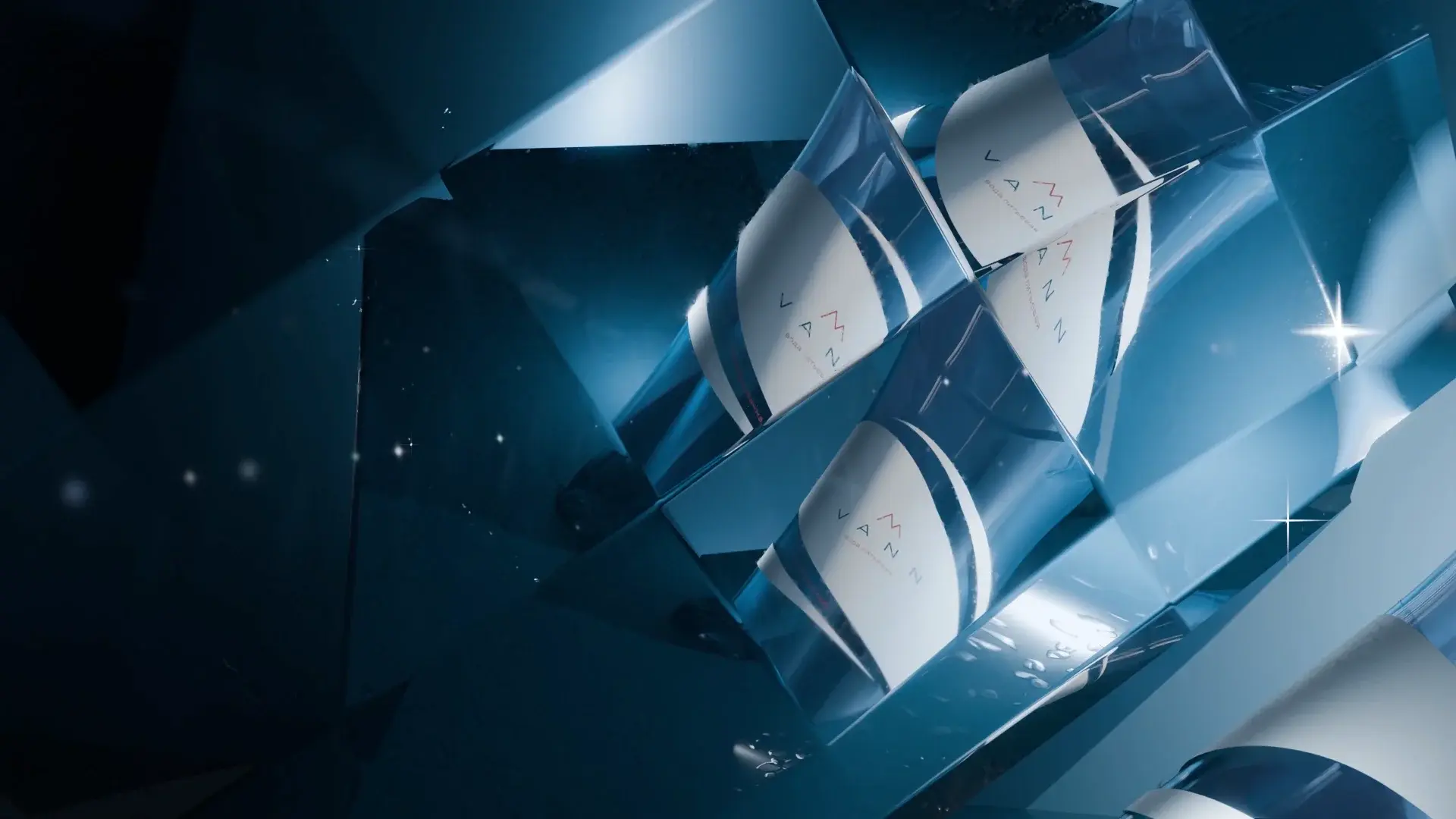 The result is a visually striking 3D video that fully conveys the crystal-clear purity of the water, its shine and refractions, enhancing the sense of freshness and premium quality of the product.