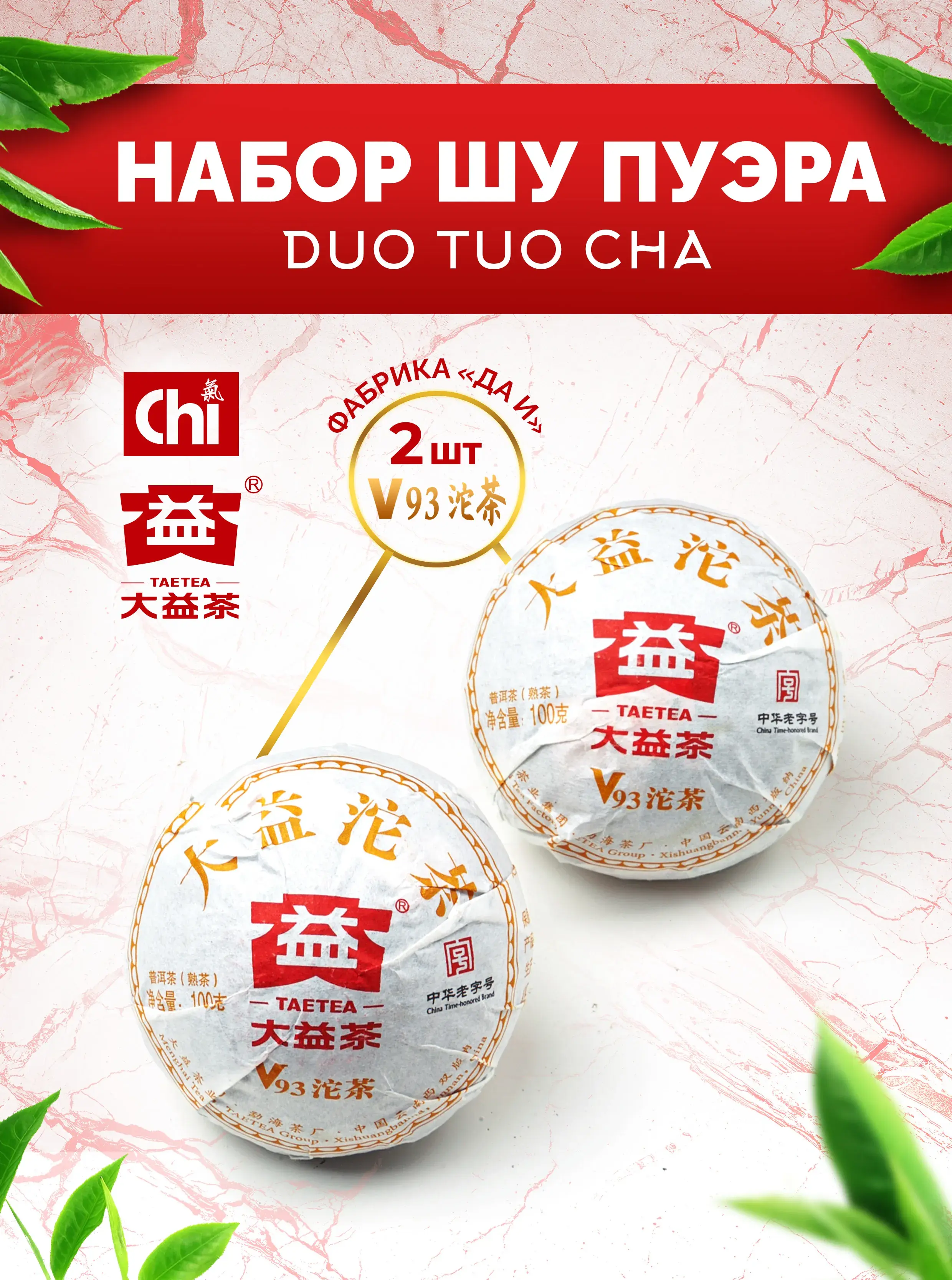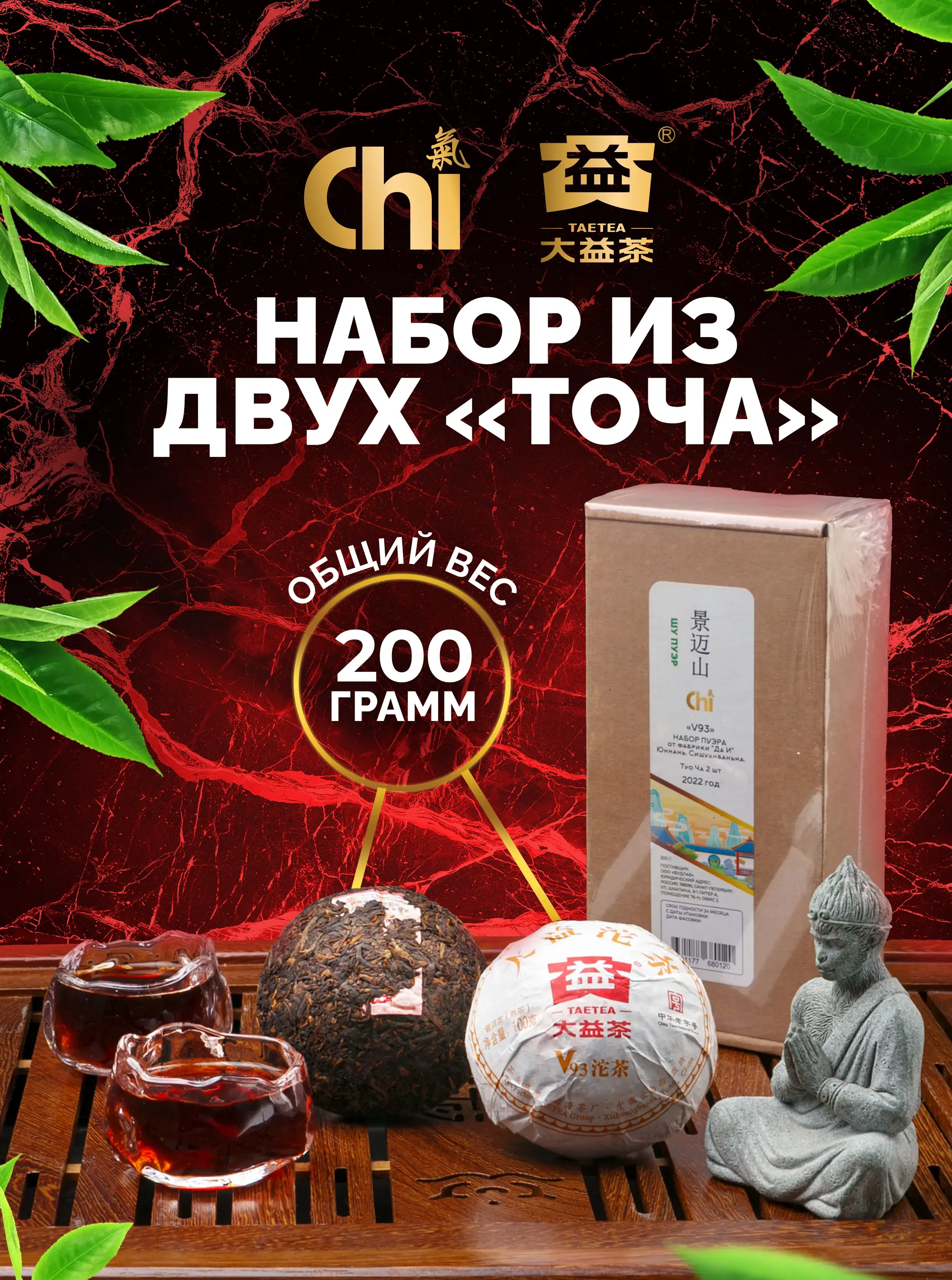 CHI is a premium Chinese tea brand from “Da Yi” factory (Dayi), founded in 1940 in Yunnan Province V93 — one of the most popular mass-produced shu puer recipes, pressed into “bird’s nest” (tocha) form Weight: 2 pcs of 93 g each, wrapped in traditional paper with 大益茶 hieroglyphs Aroma: baked fruits, wet wood, berries Taste: dark chocolate, hazelnut, dried fruits Available on Wildberries, Ozon, tea marketplaces