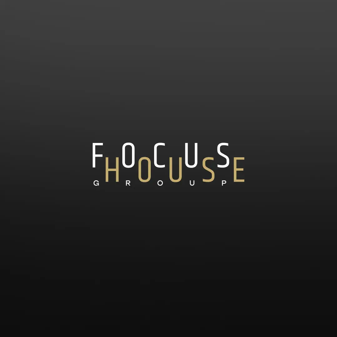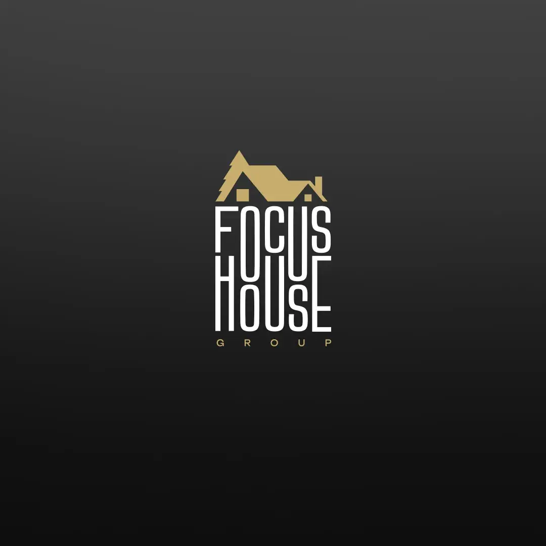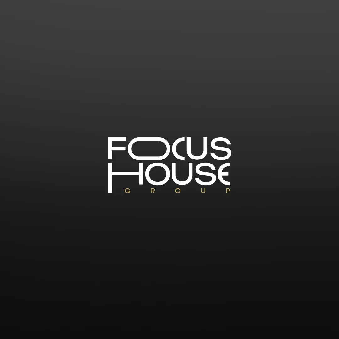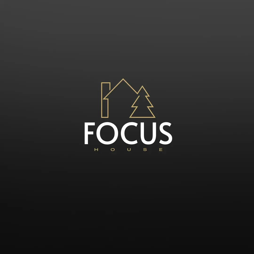 • “FOCUS” in modern sans-serif with refined lines, “HOUSE” in gold for warmth