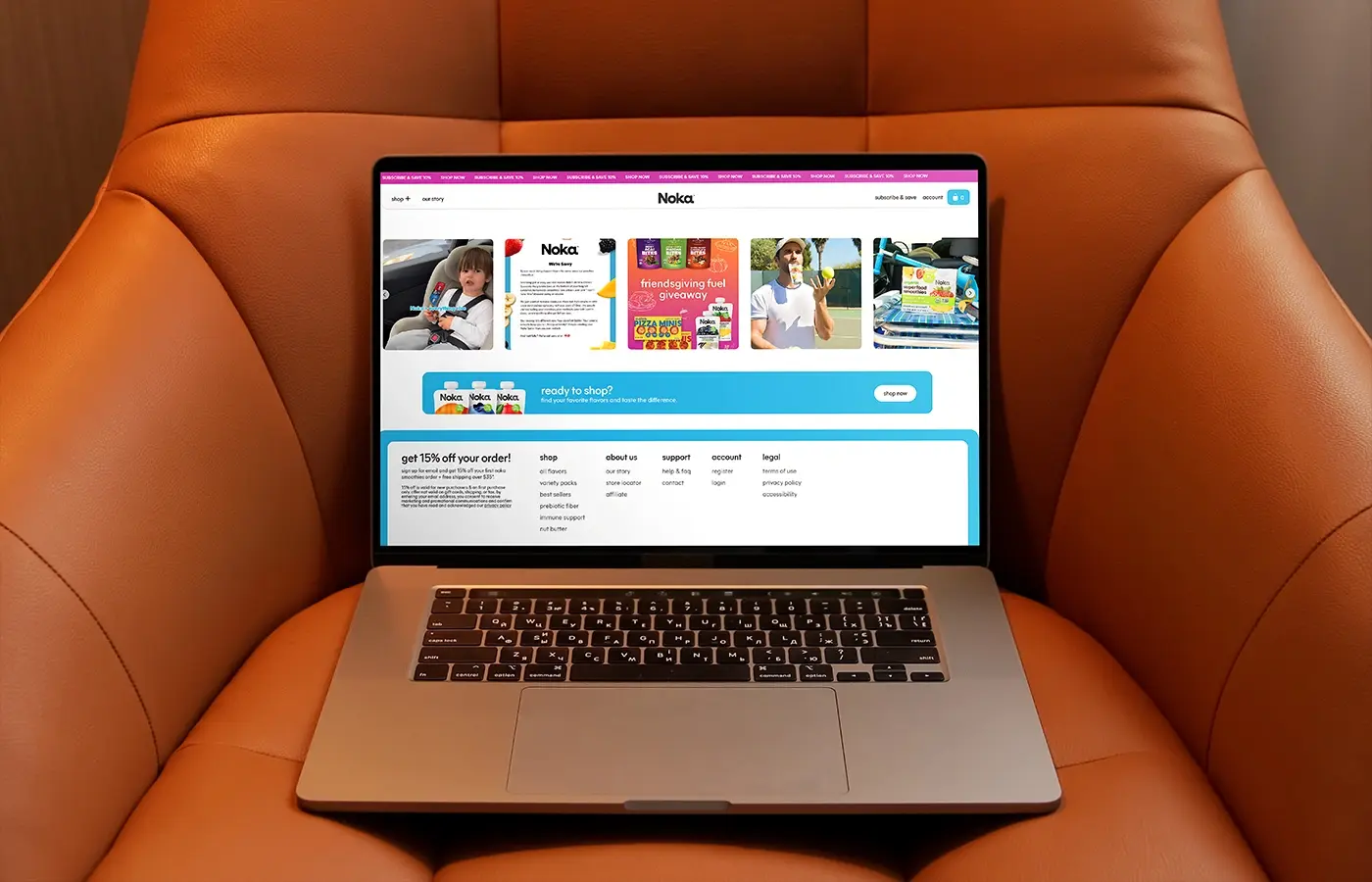 Website design and development for Noka Organics — a user-friendly platform for superfood smoothies in portable pouches, highlighting naturalness, convenience, and on-the-go flavor.