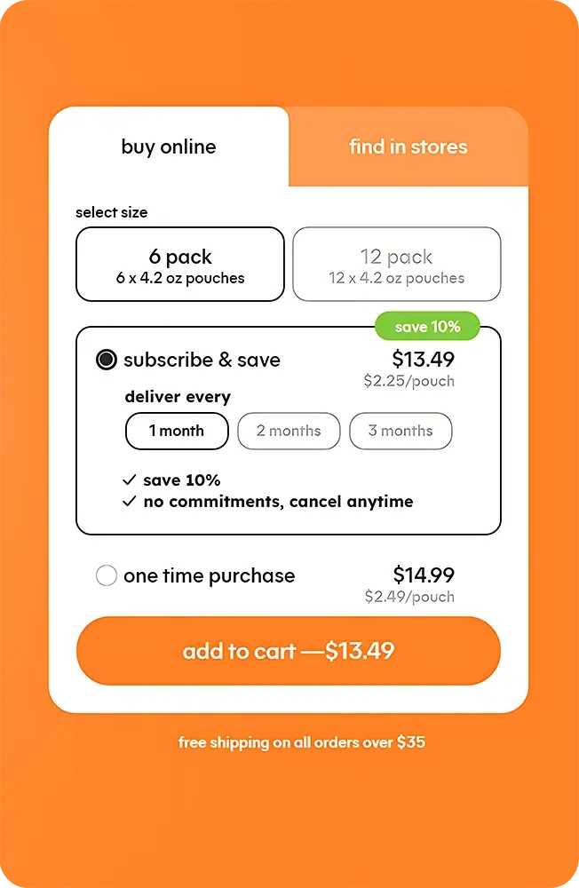 • E-commerce: “Subscribe & save” for recurring subscription, “Top Flavors, One Pack” with Variety Pack, “Shop Now” button